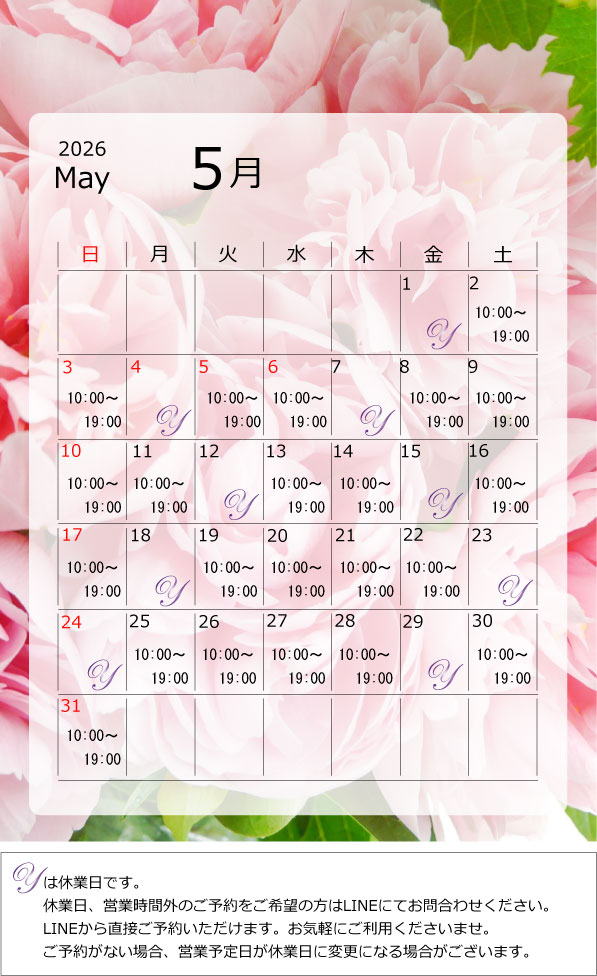 *休業日、営業時間外のご予約をご希望の方はLINEにてお問い合わせください。