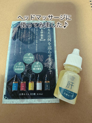 ヘッドに五律オイルを塗布して手で軽くマッサージをした方が、頭皮が柔らかくなりました。